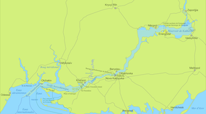 - Le barrage et la centrale hydroélectrique de Kakhovka[wp].