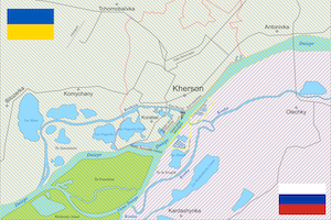 Kherson avec sa zone portuaire et ses îles fluviales.